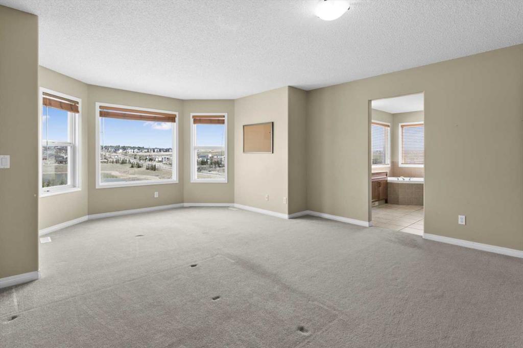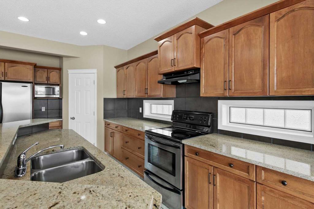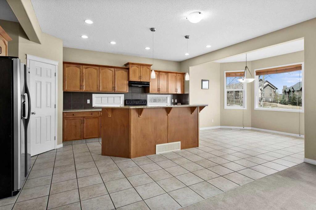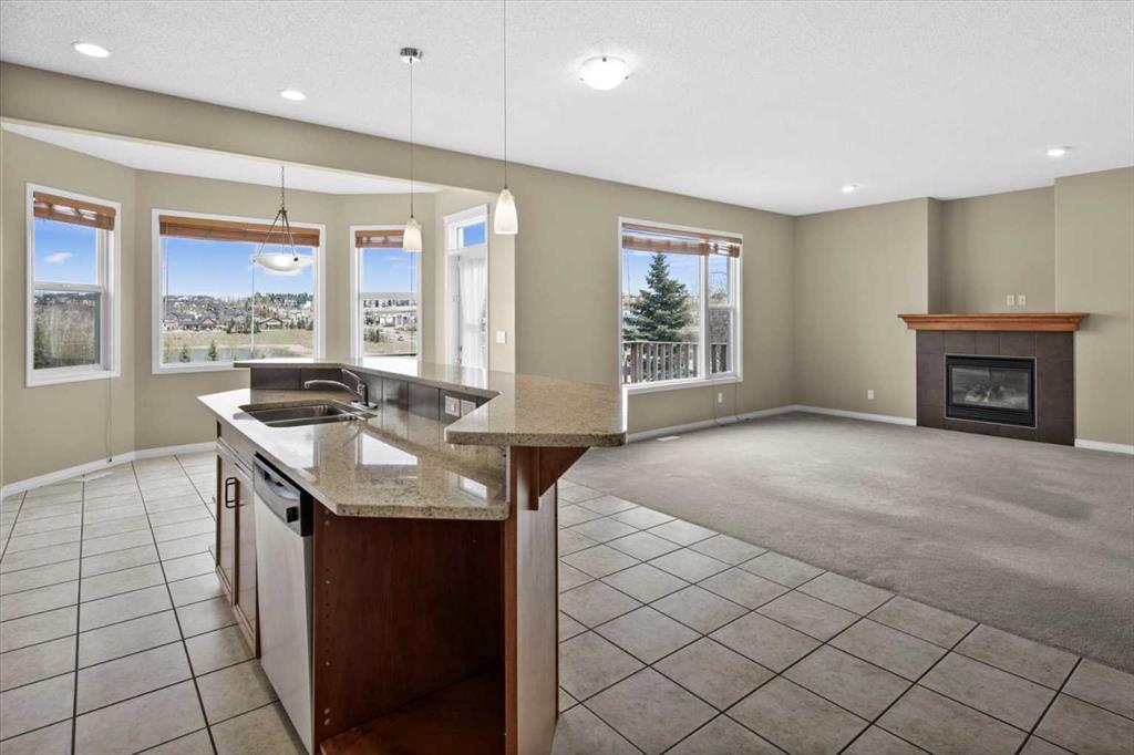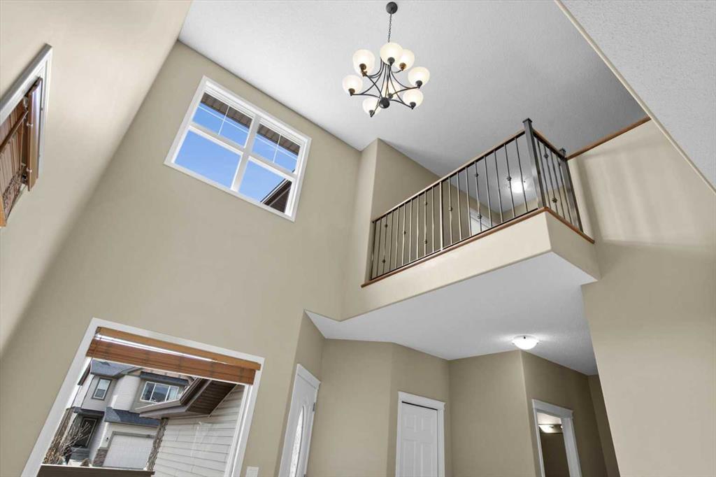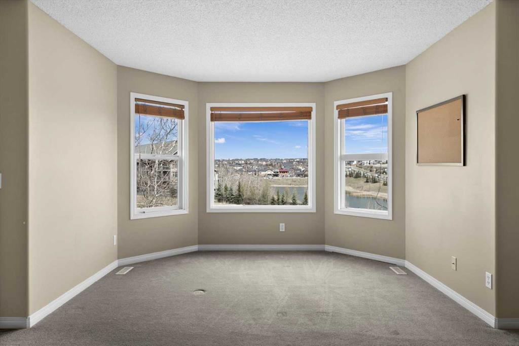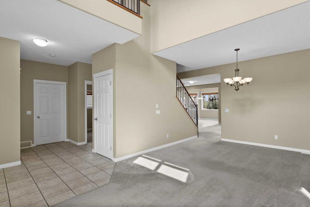 Welcome to this lovely 4-bedroom home with serene pond views in the heart of Springbank Hill. From the moment you step inside, the soaring open-to-above entryway creates an airy, inviting atmosphere that extends into the great room, highlighted by impressive 18-foot ceilings. The bright and spacious kitchen, living room, and dining nook all enjoy unobstructed views of the tranquil ponds of Aspen Landing. The kitchen is designed for both functionality and style, featuring granite countertops, a pantry, and a raised breakfast bar offering ample storage and prep space. The main floor also includes a dedicated home office, a convenient half bath, and a laundry/mudroom with direct access to the double attached garage. Upstairs, the generous primary suite overlooks the ponds and offers a 5-piece ensuite and a walk-in closet. Three additional well-sized bedrooms—one notably large and south-facing—are serviced by a full 4-piece bathroom. The undeveloped basement is a blank canvas for your future plans, complete with a rough-in for a bathroom and an additional laundry hook-up. With large windows throughout, this home is filled with natural light and perfectly positioned to take full advantage of its picturesque setting.