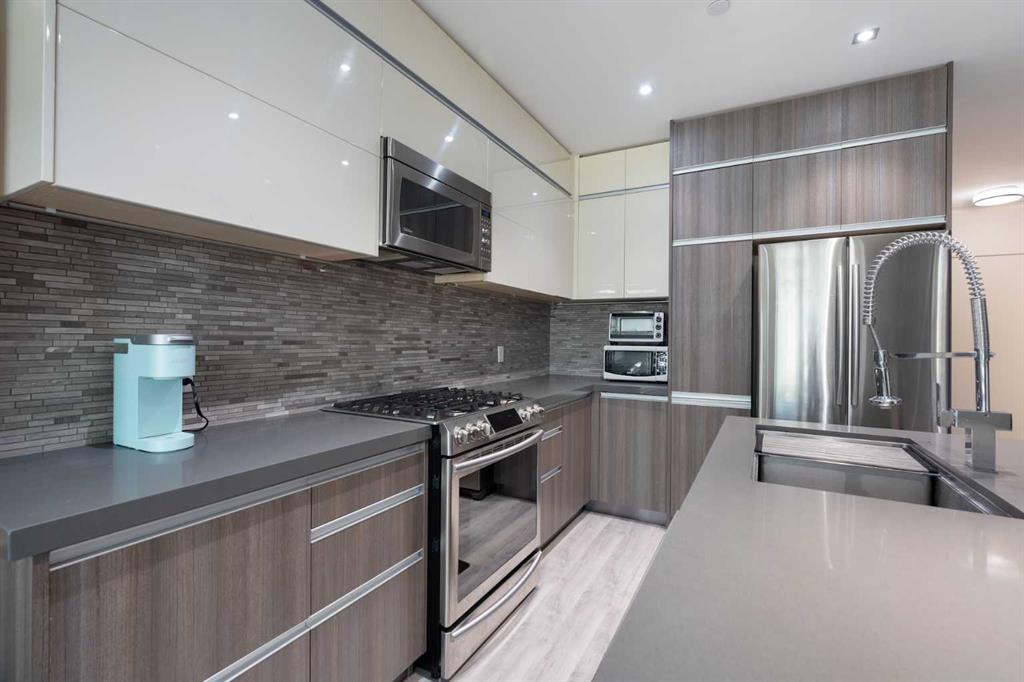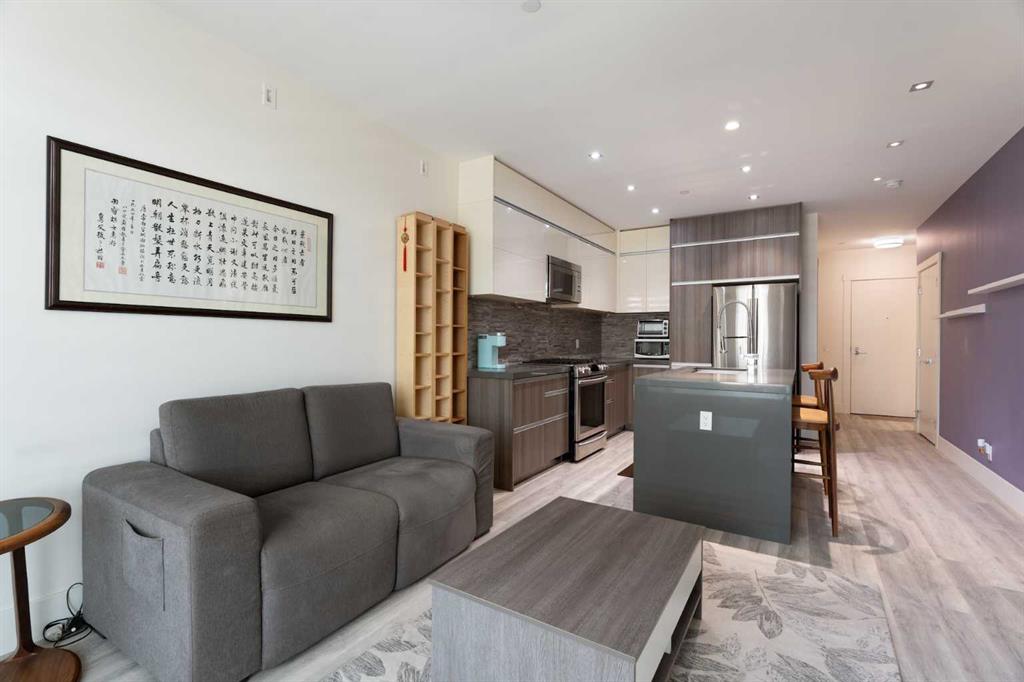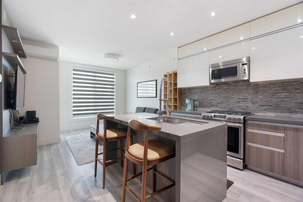 Welcome to Unit 308, an inviting and stylish 2-bedroom, 2-bathroom condo perfectly situated in Crescent Heights. This bright, open-concept home blends modern design with everyday functionality, featuring expansive windows that fill the space with natural light, sleek LVP flooring, and a fresh, neutral palette. The contemporary kitchen is equipped with stainless steel appliances, quartz countertops, and sleek, flat-panel cabinetry with generous storage—ideal for cooking, entertaining, or enjoying a quiet meal at home. The spacious living and dining area opens to a private balcony, perfect for morning coffee or evening relaxation. The primary suite includes a large closet and a stylish 4-piece ensuite, while the second bedroom is well-sized with its own adjacent full bath—offering ideal separation for guests, roommates, or a home office. Additional highlights include in-suite laundry, secure parking, and a stunning rooftop terrace to enjoy the beautiful panoramic downtown and mountain views. Located in a boutique building just steps from cafés, restaurants, shops, river pathways, and city transit, this home delivers the ultimate urban lifestyle—whether you’re a first-time buyer, downsizer, or investor.
