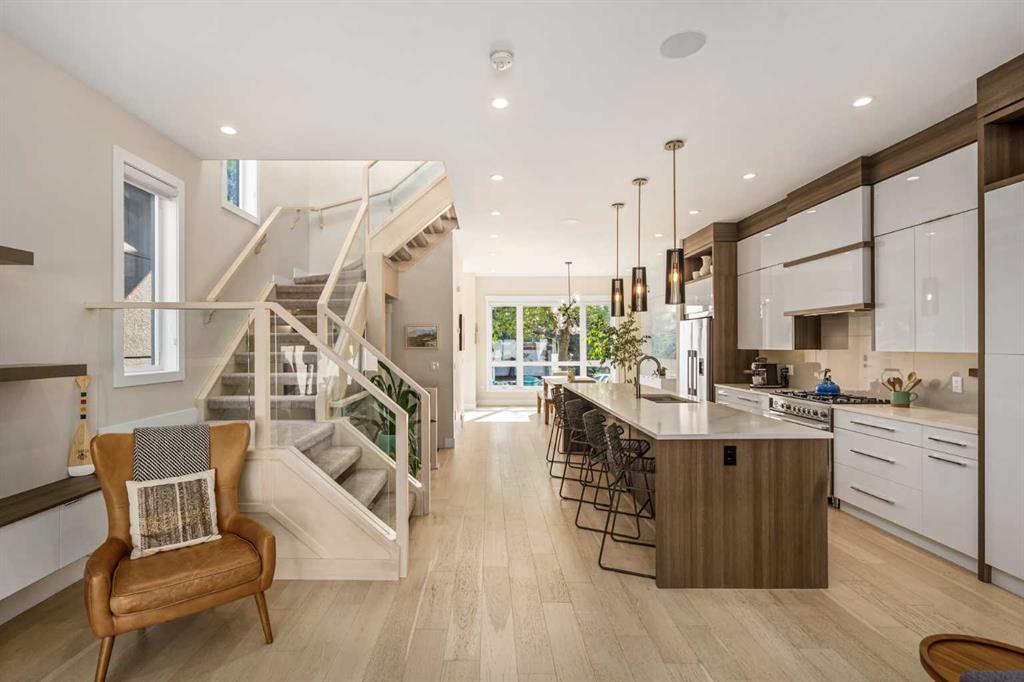 Make Your Mark in Rutland Park! It’s not very often a home like this becomes available in this community, it is a beautifully maintained and thoughtfully designed home that perfectly combines inner-city convenience with modern comfort. Step inside to a bright, open-concept main floor featuring 10 foot ceilings and large windows that flood the space with natural light. The spacious living area flows seamlessly into a modern kitchen complete with stainless steel appliances, sleek cabinetry, and a massive quartz island —ideal for both everyday living and entertaining. Upstairs, you’ll find the primary retreat with a large walk-in closet and spa-inspired ensuite with free-standing soaker tub and two sided fireplace. Additionally, there are 2 generous bedrooms plus a loft area, dedicated laundry room with sink and a 4 piece bathroom. The fully developed lower level offers additional living space/recreation area with wet bar—perfect for movie nights and an area for your fitness equipment. Also enjoy a fourth bedroom and 4 piece bathroom. Outside, enjoy a private backyard oasis with a large deck and plenty of room for summer BBQs, gardening, or simply relaxing. The newly added exposed aggregate front patio is perfect for enjoying the southern exposure. The property also features a double garage and is nestled on a quiet, tree-lined street just steps from schools, parks, shopping, and transit. With quick access to downtown and major routes, this home offers the perfect blend of lifestyle and location.