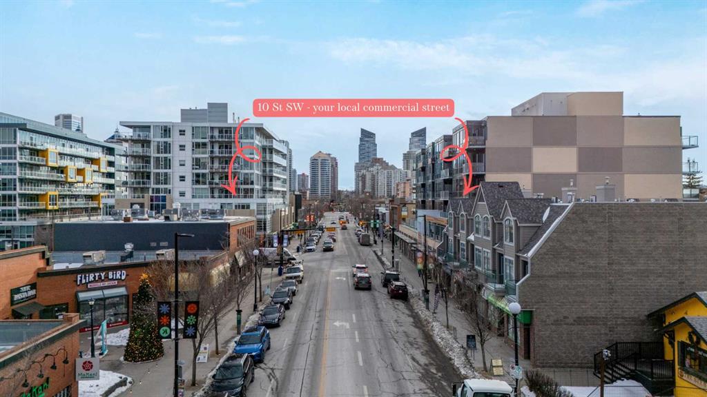 Welcome to urban sophistication in the heart of Sunnyside. This beautifully appointed single bedroom penthouse unit offers the perfect blend of modern design, functionality, and inner-city convenience. Step inside to discover soaring ceilings and expansive windows that flood the space with natural light, creating an open and airy atmosphere rarely found at this price point. The thoughtfully designed living area easily accommodates full-sized furnishings, making it ideal for both everyday living and entertaining. Clean contemporary finishes, warm flooring, and a neutral palette provide a timeless backdrop to suit any style. The open-concept layout flows seamlessly, maximizing space and comfort while maintaining a sense of separation where it matters. Be amazed by the near new condition, assigned storage locker, titled parking, wash bay in the parkade and workshop for your bike tune ups. Situated just steps from Kensington, Sunnyside LRT, boutique shops, cafés, and river pathways, this location offers effortless access to downtown Calgary while preserving a vibrant neighbourhood feel. Whether you’re a professional, downsizer, or investor, this home delivers exceptional value in one of Calgary’s most walkable and desirable communities.