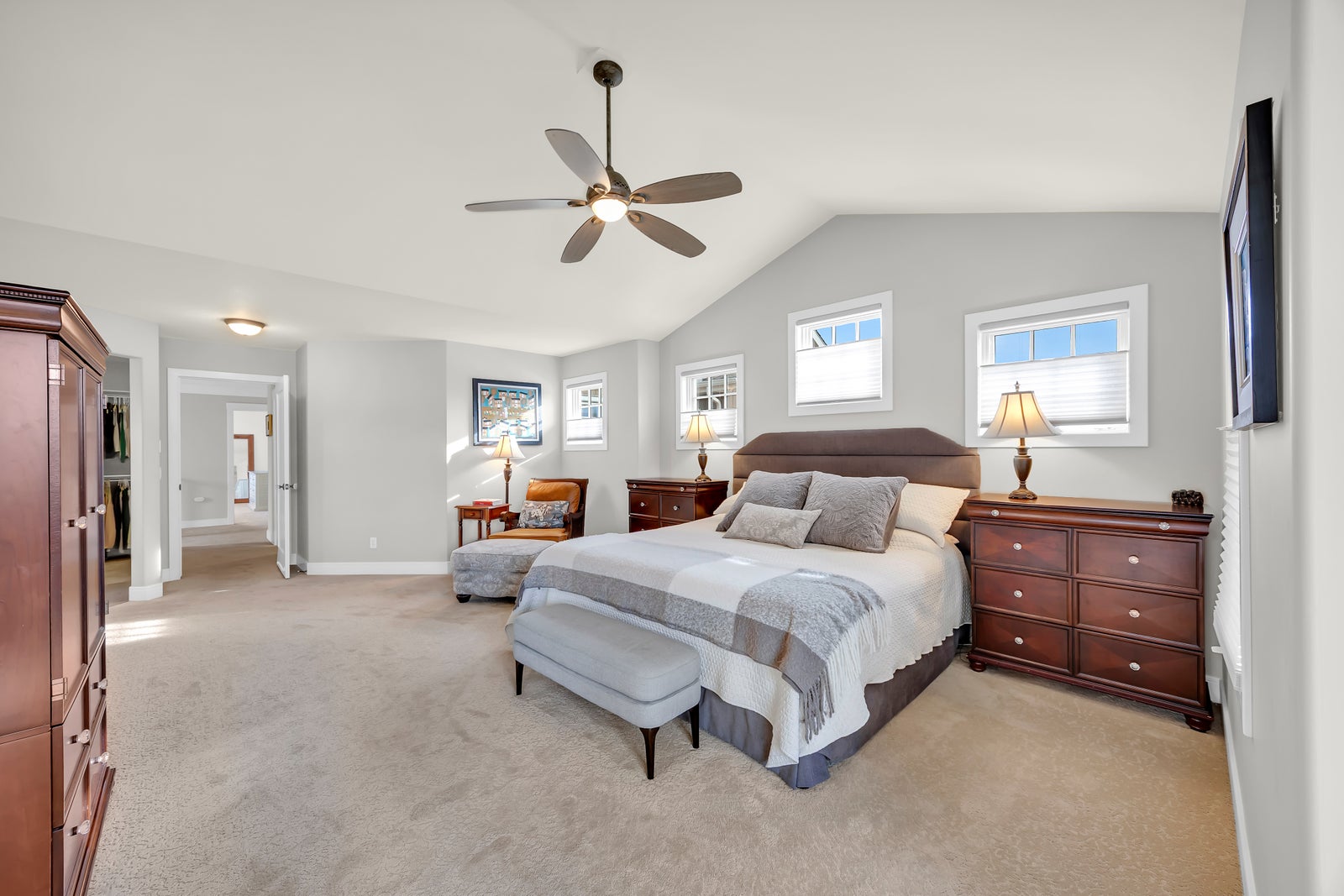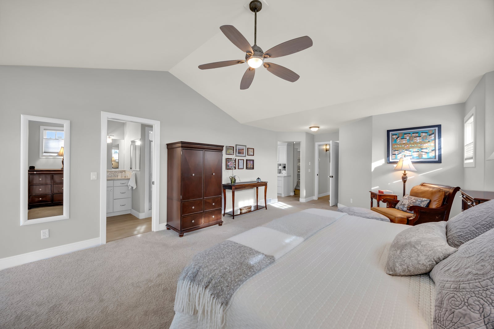 Vaulted ceilings, 4 ensuite bathrooms, heated attacehd triple car garage, large rooms, walkout developed lower level with separate access, dog run, low maintenance