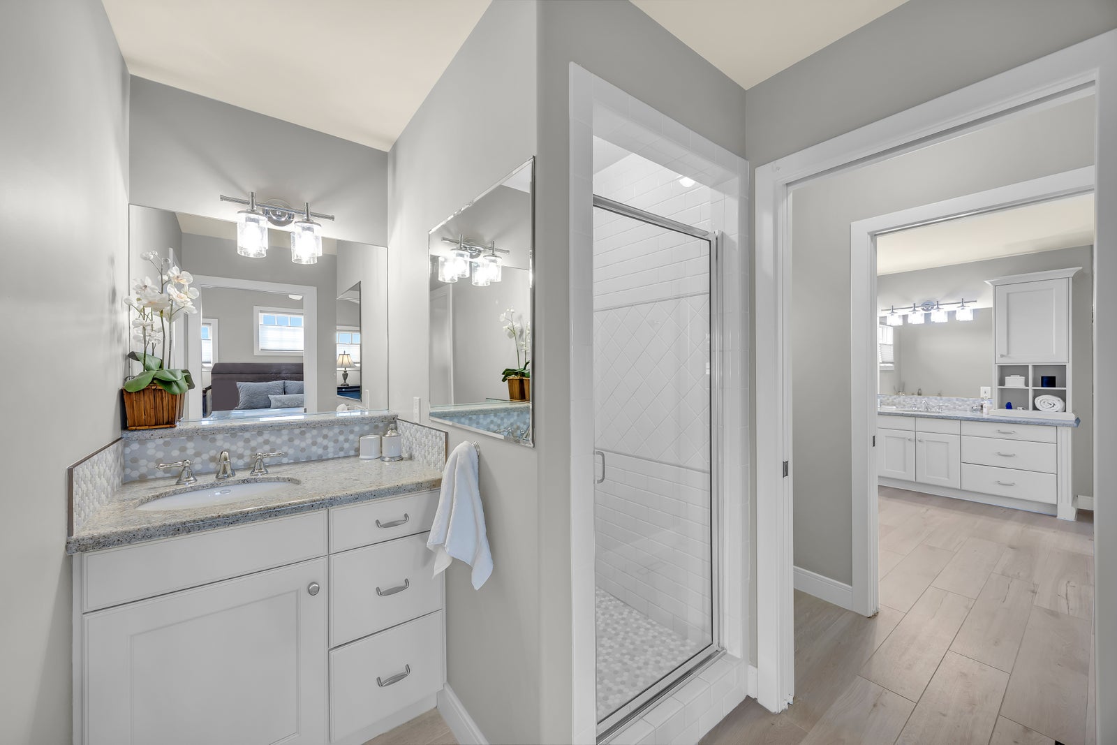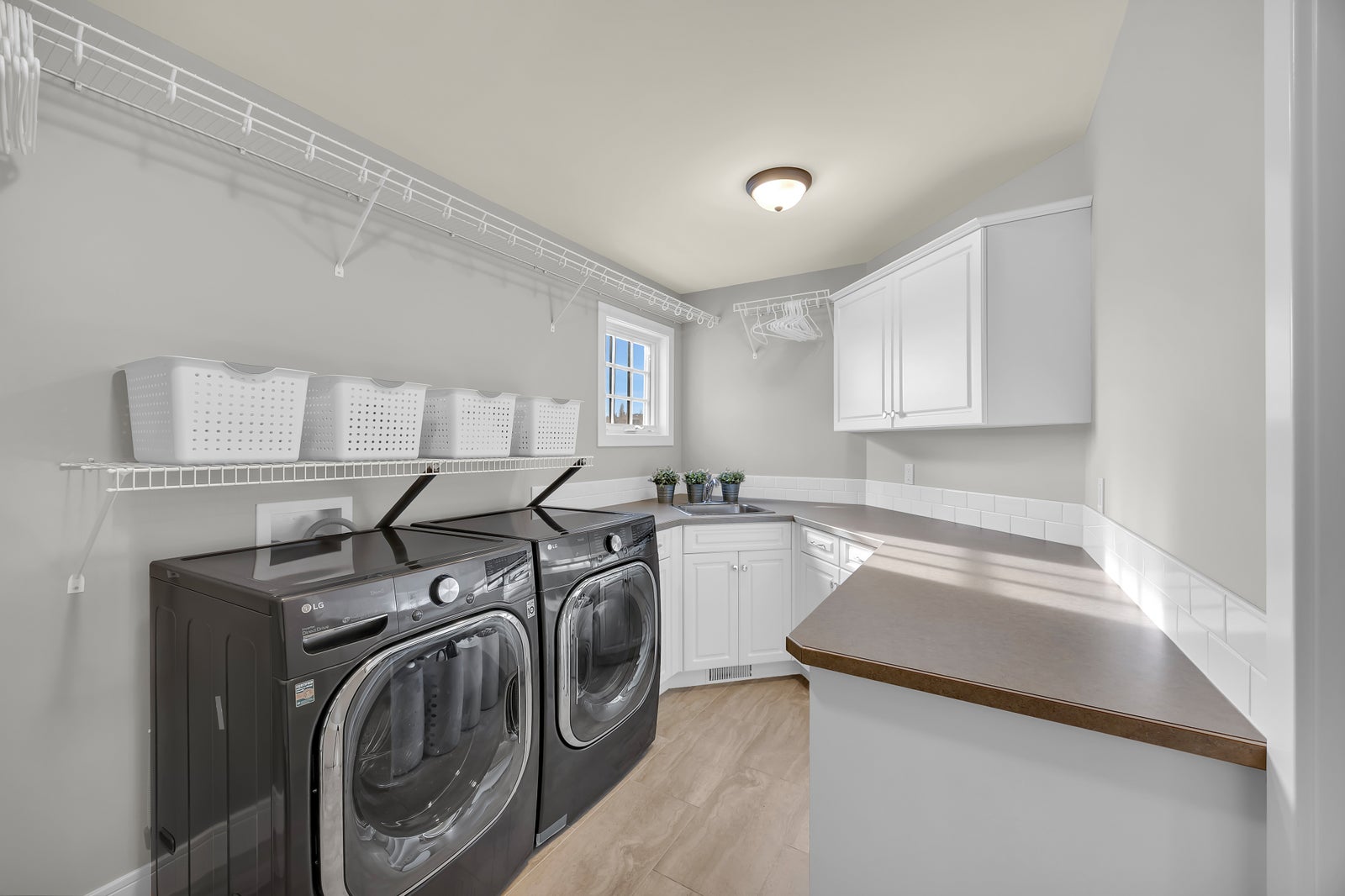 This home features FOUR ENSUITE BATHROOMS! The upper level is perfectly suited for family life, featuring a generous primary retreat with a well-appointed ensuite complete with HIS-AND-HER SINKS AND WALK-IN CLOSETS. Two additional spacious bedrooms—each with its own ensuite—provide privacy and comfort, while a large dedicated laundry room with sink, ample storage, and hanging space adds everyday practicality.