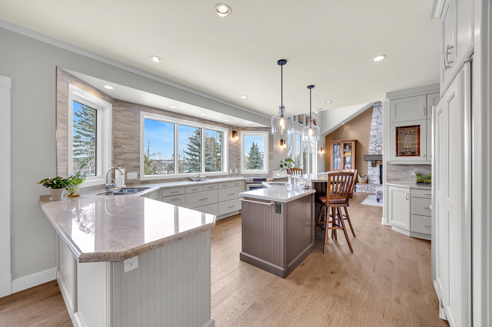 The fully developed walk-out level adds outstanding versatility with two additional bedrooms, a full bathroom, a large recreation/media room, wet bar, and flexible space ideal for a home gym, office, or teen retreat—ensuring everyone has room to spread out and unwind.Recent upgrades include updated kitchen and primary ensuite cabinets by Legacy, hardwood flooring, carpeting throughout, bathroom tile, lighting, exterior paint, a refreshed sundeck, two furnaces, air conditioning, and a hot water heater, making this home truly MOVE-IN READY.