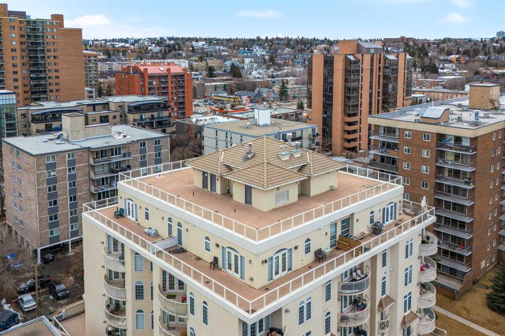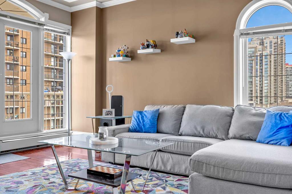 Mark your Mark at The Monoco! Welcome to Unit 401 —an exceptional corner unit in the heart of Connaught, one of Calgary’s most vibrant and walkable inner-city communities. Just minutes to downtown and steps from the energy of 17th Avenue, this 2 bedroom, 2 bathroom condo offers the perfect blend of style, comfort, and location. This bright, move-in ready home features 9’ ceilings and a well-designed open-concept layout that maximizes both space and natural light. The kitchen is beautifully appointed with granite countertops, stainless steel appliances, maple cabinetry, ceramic tile flooring, a tiled backsplash, and a central island with bar seating—ideal for casual dining or entertaining guests. The spacious living room is anchored by a built-in entertainment unit and flows seamlessly to French doors leading onto your private balcony. As a corner unit, you’ll enjoy expanded sightlines and an abundance of natural light. For an even more impressive experience, take advantage of the building’s rooftop patio, offering incredible views and the perfect setting for entertaining. The primary bedroom is generously sized and features a 4-piece ensuite with a jetted soaker tub, creating a true retreat. A second bedroom provides flexibility for guests, a roommate, or a home office. Both bathrooms have been updated with granite countertops and tiled tub surround and shower. Additional highlights include in-suite laundry and a heated, underground titled parking stall—a must-have for inner-city living. Whether you’re a professional, investor, or looking to enjoy the best of Calgary’s urban lifestyle, this is a rare opportunity in a sought-after location.